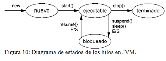 Un hilo Java puede estar en cualquiera de los siguientes cuatro esta­dos (Figura 10):