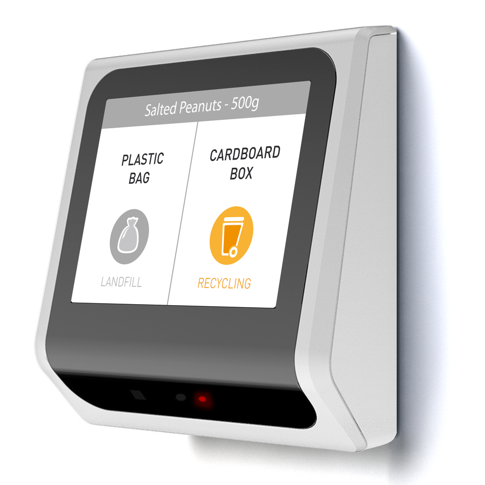 Equipado con un lector de barras, un sensor de movimiento y una pantalla Eugène es capaz de identificar cada producto y mostrarles no solamente si es o no reciclable, sino también que partes pueden ser recicladas. Y encima de esto, al estar sincronizada con un APP de celular, puede aconsejarnos que producto comprar en vista de nuestro inventario, y conseguir puntos, descuentos y hasta regalos por lo que vayamos reciclando.