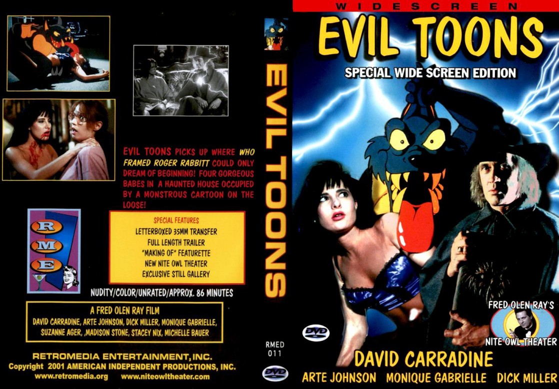¿Qué sucede cuando mezclas chicas de fraternidad desnudas, inocentonas, un demonio animado baboso copiado del Demonio de Tasmania y David “Por favor dame mi cheque de pago” Carradine como un mago de vaqueros drogado?Naturalmente, obtienes el ridículo robo de Roger Rabbit conocido como Evil Toons. No digas que no fuiste advertido.