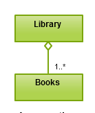 Se refiere a la formación de una clase particular como resultado de una clase agregada o construida como una colección. Por ejemplo, la clase “biblioteca” está compuesta de uno o más libros, entre otros materiales. En agregación, las clases contenidas no dependen en gran medida del ciclo de vida del contenedor. En el mismo ejemplo, los libros permanecerán así incluso cuando la biblioteca se disuelva. Para mostrar la agregación en un diagrama, se dibuja una línea desde la clase principal hasta la clase secundaria con una forma de diamante o rombo cerca de la clase principal.