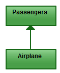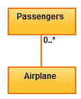 Es un término amplio que abarca casi cualquier conexión lógica o relación entre clases. Por ejemplo, pasajeros y aerolíneas pueden estar vinculados como se ve en la imagen: