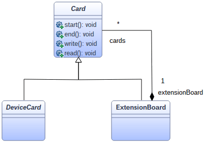 Esto es una recursión compuesta. Nuestra computadora solo puede administrar 3 tarjetas adicionales. Sin embargo, puede usar una ExtensionBoard que permitirá el uso de otras tarjetas. En realidad, esta ExtensionBoard puede contener y reunir muchas Tarjetas y, por qué no, otra ExtensionBoard que permitirá a la computadora usar otras. Composite modela así la recursión.