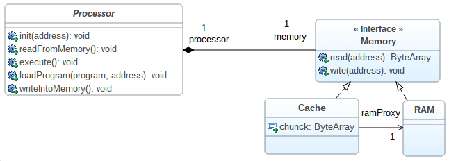 Primero, comencemos con uno simple: el patrón proxy. Lo usamos para diseñar los elementos de RAM / caché.